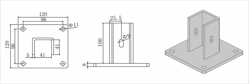| 鋁型材防護圍欄安裝底座: | |